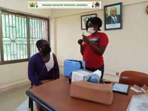 According to the Municipal Director of Health Services, Mrs. Eunice Abuaku, all health workers in the municipality had been vaccinated and it is therefore prudent to vaccinate all staff to curb the spread of the covid 19. She said they have mapped out plans to vaccinate the citizenry when the time is due. She assured all staff that the vaccine was safe.