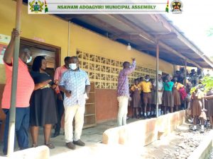 He was accompanied by the Municipal Director of Education, Mr Samuel Otopah-Ntow and the Social services sub-committee Chairman, Hon Achiah Larbi.