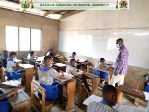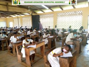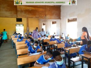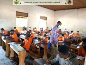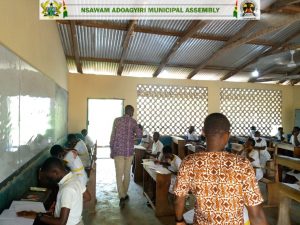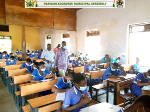 The MCE, Hon Isaac Kwadwo Buabeng visited some centers to encourage and boost their morale. He asked them to study hard so that they come out with success and also gain admissions to Senior high schools to enjoy the free SHS policy.