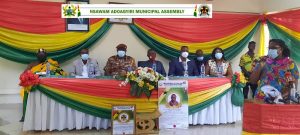 A citation and traditional stool (Asesegwa) was presented to the MCE at a short ceremony in the Assembly Hall of the Nsawam Adoagyiri Municipality to signify his outstanding performance as an MCE.