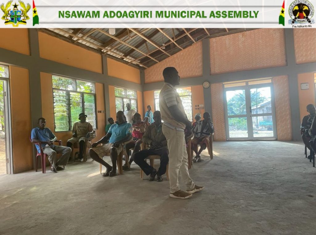 The Agriculture Department of the Nsawam-Adoagyiri Municipal Assembly continued its drive to boost agricultural development with a sensitization and registration exercise in Asiwkrom on April 18, 2024. The event introduced farmers to the benefits of the “Planting for Food and Jobs” (PFJ) phase 2, encouraging them to sign up for the program.