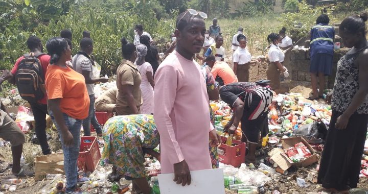 On March 27, 2024, the Environmental Health Department of the Nsawam Adoagyiri Municipal Assembly successfully destroyed expired market products confiscated during operations in December 2023 and February 2024.