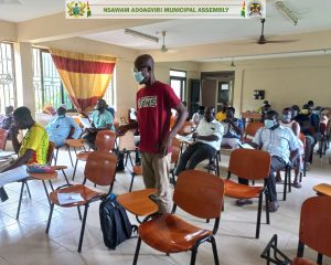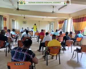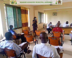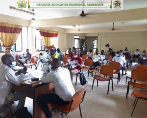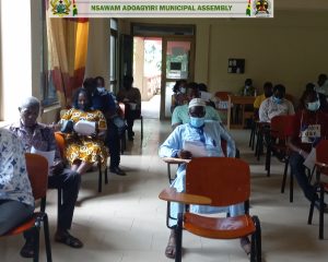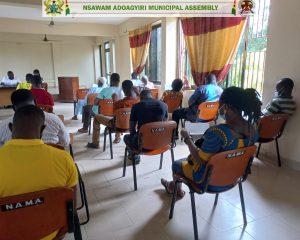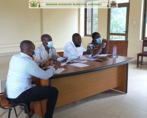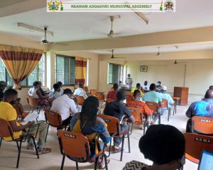 Present at the meeting were Hon. Amos Akonnor (Chairman), Mr Jeremiah Amoafo-Agyekum (MCD), Mrs. Doreen Buobu (Assistant Director IIA), among other staff of the Municipal Assembly and Also Assemblymen who form part of the Zonal Council.