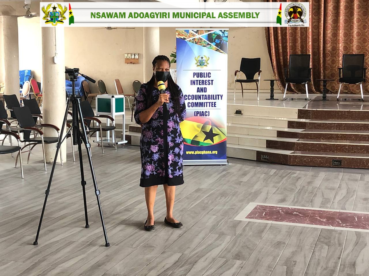 Upon the arrival and registration of participants, an opening prayer by Rev. Oppong from the Christian council was said to commence the ceremony.There was a need for the introduction of dignitaries present which included the MCE, the Chairman ofthe ceremony and other staff from the municipal assembly, PIAC members Mr. David Adjei (Economic Policy Analyst), Mr.Isaac Dwamena (committee coordinator), Kansawurche Dr. Hajia Bukari (Rep: Queen mothers), Mr. Osei K. Adow (Ghana journalists association – GJA), Alhaji Ahmed Anddison from the Muslim group and other committees and assembly members