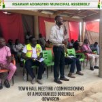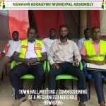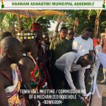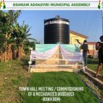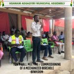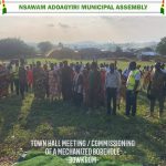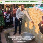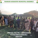 On Wednesday 14th September 2022, MCE Hon. Isaac K. Buabeng together with the MCD and some delegated staff of the Nsawam Adoagyiri Municipal Assembly engaged the people of BOWKROM Community for a Town Hall meeting to inform them on key areas such as fee-fixing resolution, budget preparation, medium term development plans and execution of plans. MCE together with the various Chiefs present also commissioned a mechanized borehole.